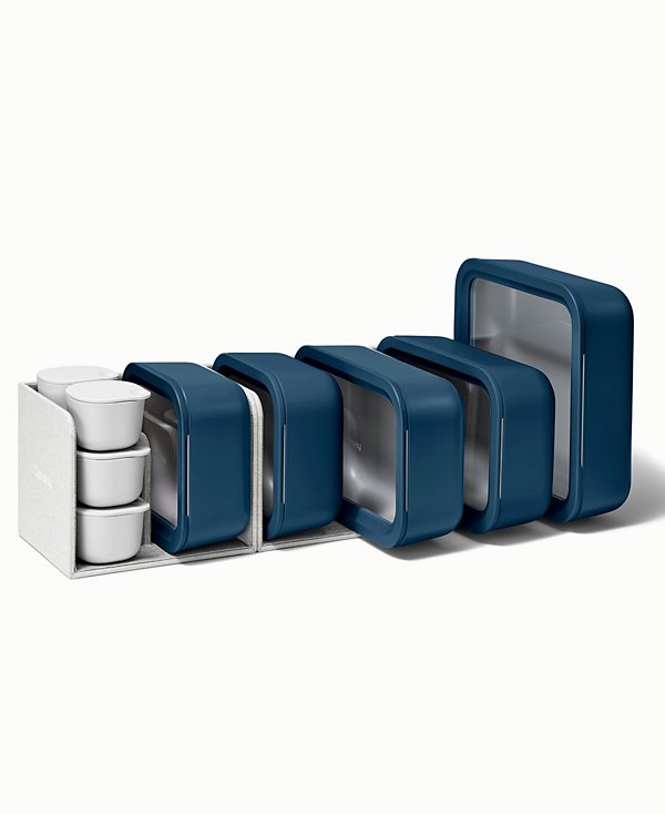 Look forward to leftovers with Caraway's food storage set, including 14 pieces of the neatest, cleanest, and best looking approach to storing food. These ceramic coated glass containers were built with an air release technology to keep your food fresh and odors out for their next act. Includes complimentary organizers to keep your cabinets tidy.